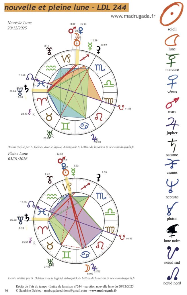 Ces lettres de lunaison permettent de développer notre libre arbitre en identifiant notamment les liens entre passé/présent/futur et les “retours du passé” à l’intérieur desquels nous pouvons devenir créateurs. Elles permettent de prendre du recul tout nous impliquant dans le monde, de sentir les opportunités énergétiques qui peuvent soutenir nos projets, de développer notre intuition, de donner du sens aux événements et d’anticiper les ambiances et défis des semaines, mois et années à venir.